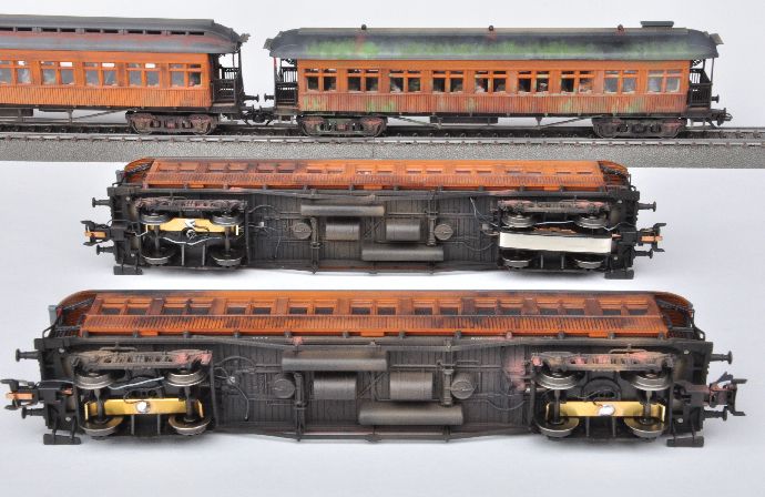 Meine Massekontakte (Artikelnummer 11) bestehen aus Messingprofil, das einfach auf den Achsen eines Drehgestells aufliegt. Der Kontakt wird durch das Eigengewicht hergestellt. Alle Züge, die von mir mit Beleuchtung ausgerüstet werden, erhalten diese Massekontakte aus Messingprofil, sofern der Einbau möglich ist. Sie verursachen praktisch keinen Rollwiderstand.