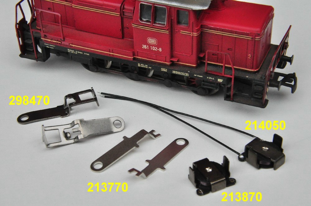 Vormals hatte die Lok nur Kupplungshaken. Der Platz für eine Telexkupplung älterer Bauform ist vorhanden. Die Ersatzteile im Bild. - - - Link zum Verkauf. Alternativ lässt sich in diese Öffnung auch eine SYMOBA 111 mit Schächten 103 montieren. In diesen Schacht könnte man dann auch eine Telexkupplung E117993 neuer Bauform einstecken. Möglich ist beides. Entscheiden wir uns hier für die Märklin Version. Die Variante mit SYMOBA 111+103 passt in die 81 gleichermaßen wie in die 260. |