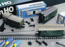 Alte Modelle kurz gekuppelt, Folge 3 im MM 6.2002, Seite 68 - Download Zweiachsige Rungenwagen* 4694 und Containerwagen* 4664 und viele andere. Umbau durch Tauschteil 363950. Bremseinrichtungen an Güterwagen. Aufbringen von Beschriftungen. *: Optimaleres Ergebnis durch Einbau der SYMOBA 111 siehe Folge 18. |