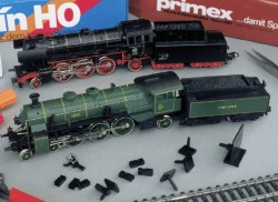 Bereits vor langer Zeit stellte ich fest, dass die alten Märklin Wagen mit Relexkupplung manchmal schwer mit der Kurzkupplung zu verbinden sind. Besonders bei der Metallkupplung befriedigte das Kuppelverhalten selten. Außerdem störte der oft gigantische Abstand der gekuppelten Fahrzeuge. Deshalb begann ich mit Umbauten dieser älteren Modelle auf Kurzkupplung. Zunächst entdeckte ich Kupplungsteile im Märklin Programm, mit denen viele Lokomotiven auf Kupplungsschacht umgerüstet werden konnten. Damit wurde es nun möglich, jeden nach NEM gefertigten Kupplungskopf an die Lok zu stecken - also auch stromführende Kupplungen. Für Wagen und Loks hatte Märklin bereits die Kupplungen 7205 im Programm. Damit war jedoch nur ein Teil des Fuhrparks abgedeckt. Für alle Modelle mit Metallkupplungen mussten andere Lösungen gefunden werden. So stieß ich auf die Kulissen der Firmen Roco und SYMOBA. Nach einigen Versuchen mit Roco-Kulissen stellte ich schnell fest, dass die SYMOBA Produkte viel einfacher in der Handhabung sind. Sicherlich unterscheiden sich die Produkte nicht nur in der Qualität sondern auch im Preis; aber SYMOBA bietet einen leichteren Umbau, weil die Kupplungshöhe stufenlos angepasst werden kann. Heute gibt es bei SYMOBA die günstigen Großpackungen mit 10 Paar Kulissen und Schächten. So lässt sich auch der Umbau eines größeren Fuhrparks auf Kulissenführungen finanzieren. |