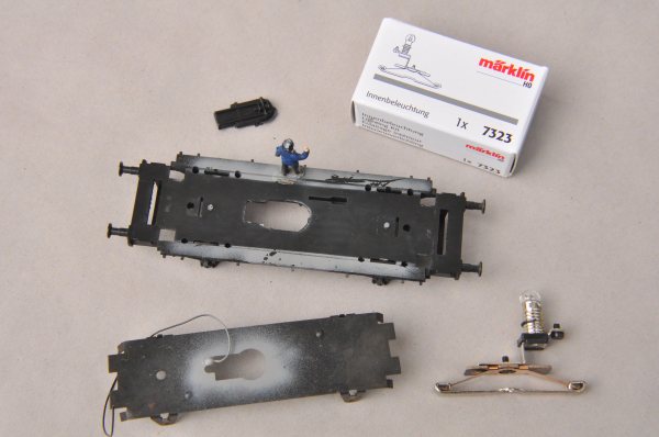 Die Stromversorgung des einen Wagens soll die Innenbeleuchtung 7323 übernehmen. Sie liegt hier bereit. |