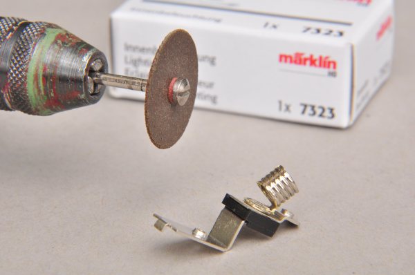 Allerdings hat diese gleich eine Glühlampe mit am Schleifer. Diese wird nicht benötigt. |