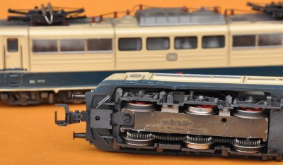 Bei neueren Loks ist die Kupplungsaufnahme etwa 9,5mm breit, hier passt 671860. Damit kuppelt die Lok enger am Zug als mit einer Tauschkupplung aus 7205.