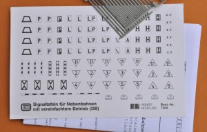 Signaltafeln, Kilometerzeichen und Geschwindigkeitstafeln sind ebenfalls Zubehörteile, die dem Gleisumfeld realisitische Atmosphäre verschaffen. Kilometerzeichen findet man bei Weinert. Für Hauptbahnen und Nebenbahnen gibt es spezielle Ausführungen. Auch Geschwindigkeitstafeln sind im Sortiment zu finden.