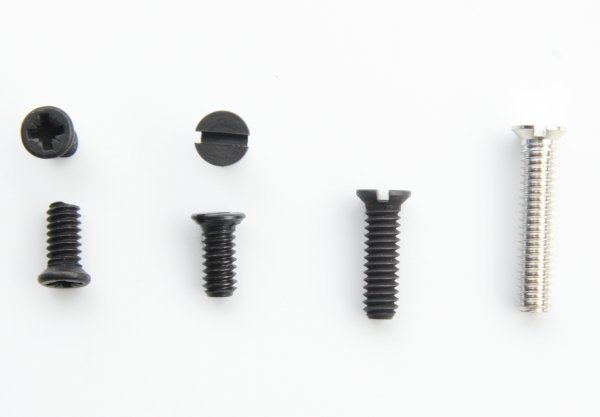 Senkschrauben M2 zur Befestigung von Schleifern, Halteplatten und anderem; großes Bild Die angegebene Länge ist die Gesamtlänge der Schraube - Staffelpreise siehe oben Märklin 786790 Länge ca. 4,5mm, Kreuzschlitz, schwarz, z.B. BR 89, 260 etc. - links im Bild - Märklin 756100 Länge knapp 4,5mm, Schlitz, schwarz, z.B. BR 89, 260 etc. Märklin 756090 Länge 7mm, Schlitz, schwarz Märklin 756080 Länge 10mm, Schlitz, blank, z.B. für Drehgestell-Loks - rechts im Bild - |