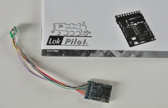 ESU 54610 Lokpilot 4.0; Preis 31,40 € Der Anschluss erfolgt über den 8-poligen Schnittstellen-Stecker, das Kabel für F2 muss angelötet werden. Kabelfarben nach NEM/DCC-Norm. Der Anschluss über eine Schnittstelle ist sehr sinnvoll, denn die Verdrahtung der Lok kann vor dem Einstecken des Decoders ausgeführt und geprüft werden. Anzahl der Funktionen: 4 (alle Funktionen mit Anschlusskabel) |